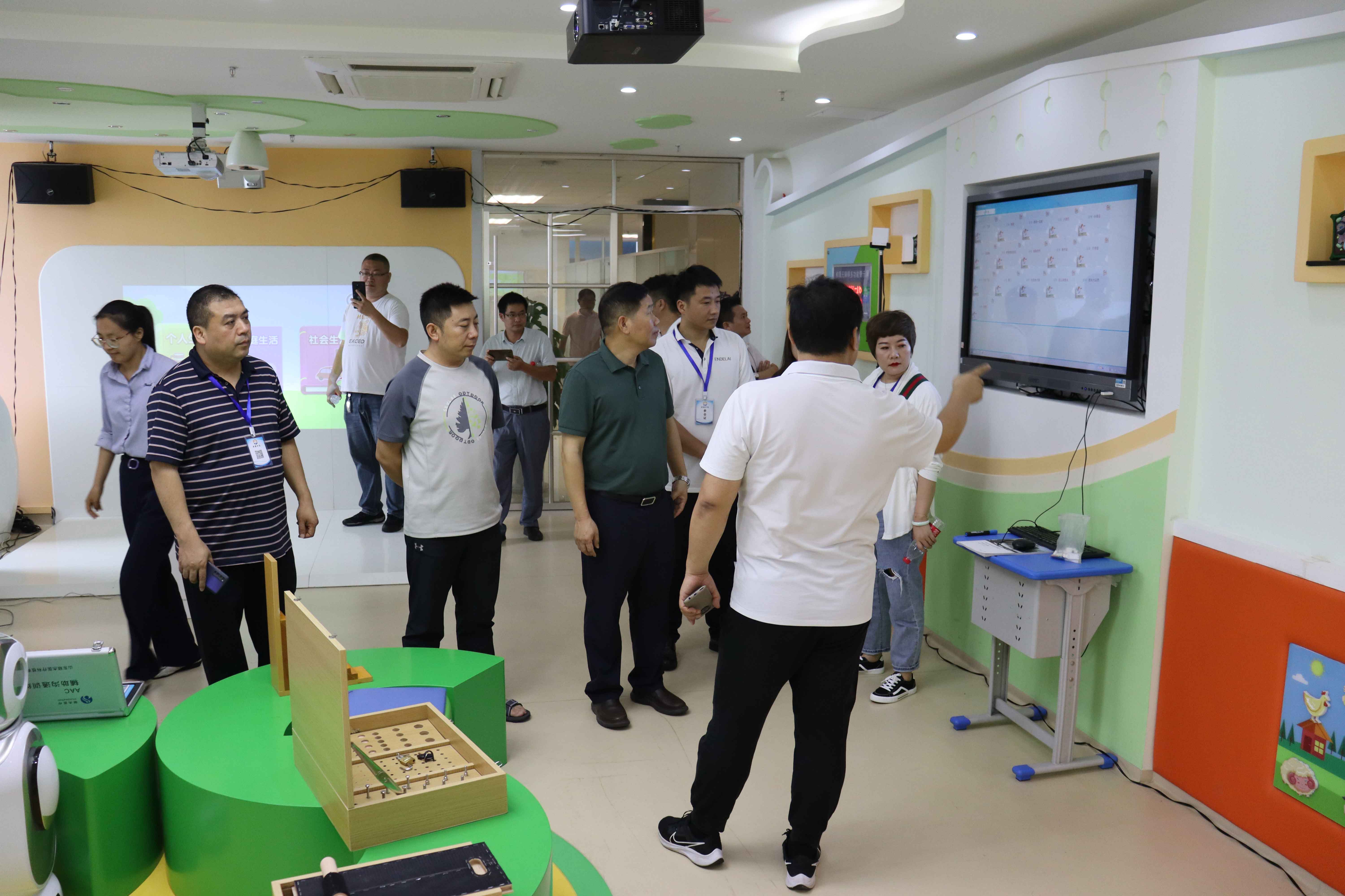 16日上午,与会人员在工作人员的带领下参观公司。公司产品从研发到生产再到最后的成品展示,一个个承托特殊儿童希望的设备、系统,展示着公司强大的研发实力、生产实力、以及软件开发实力。